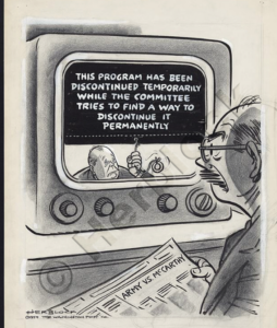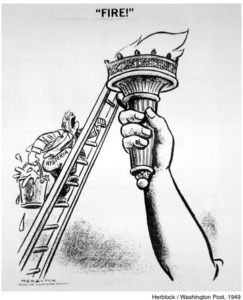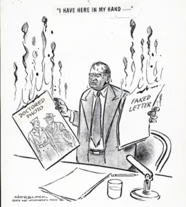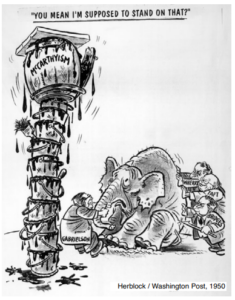Για να φτάσουμε στο τέλος, υπήρξαν μικροί ήρωες που δεν σταμάτησαν λεπτό να αντιστέκονται στην παράνοια. Ένας απ’ αυτούς ήταν ο Χέρμπερτ Μπλοκ, γνωστός με το ψευδώνυμό του Herblock, γελοιογράφος της εφημερίδας Washington Post, ο οποίος δεν σταμάτησε ούτε λεπτό να στηλιτεύει και να αποδομεί με το καυστικό του χιούμορ τον Μακάρθι κι όλη αυτή την ιστορία, μάλιστα σε μια δική του γελοιογραφία οφείλεται ο όρος «μακαρθισμός». Με πρωτοστάτη τον Herblock, οι πολιτικοί γελοιογράφοι υπήρξαν η πρώτη γραμμή άμυνας κατά του μακαρθισμού. Τα “δεν είδα, δεν άκουσα, δεν κατάλαβα, εκτελούσα εντολές” δεν ήταν γι’ αυτούς.